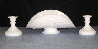 MILK GLASS CONSOLE SET BANANA BOWL CANDLE HOLDERS GRAPE