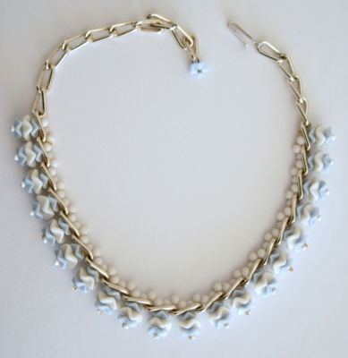 3$ SpringFling! Baby Blue & White Milk Glass Necklace