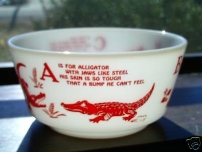 Hazel Atlas Milk Glass Alphabet Bowl ABC in Red