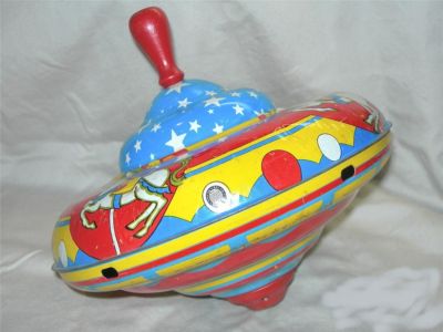 Vintage Tin Litho Spinning Carousel Top Ohio Art 9-1/2"