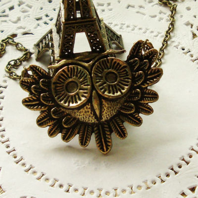 Antique Bronze Big Owl Pendant Retro Necklace FREE