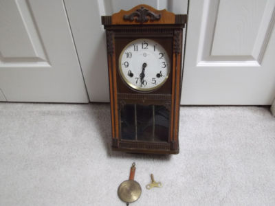 Antique Wall Clock W/Pendulum & Key/Nice Wooden Case