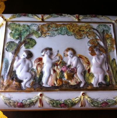 Capodimonte Trinket Jewelry Box W/ Cherub Design