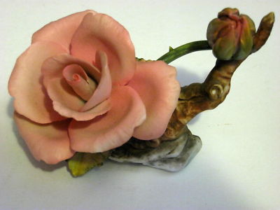 Napoleon Italy Porcelain Capodimonte Pink Rose & Bud.