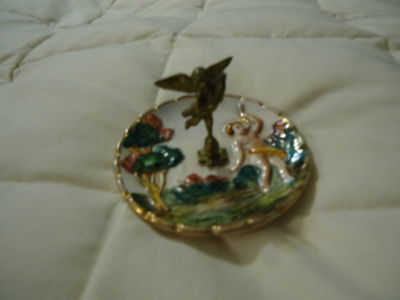 ITALY CAPO DIMONTE BRONZE ANGEL CHERUB PLATE DISH