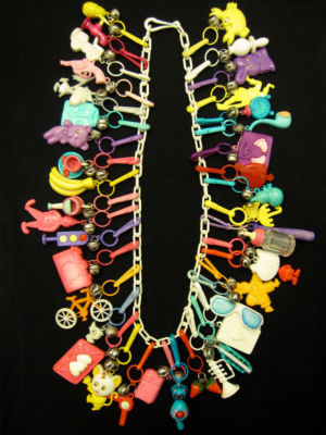 Vintage 1980's Retro Plastic Bell Charm Necklace