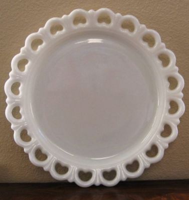 Vintage Milk Glass Plate / Platter with Lace Scalloped