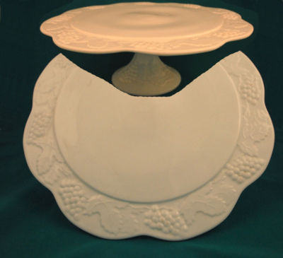 MILK GLASS Pedestal CAKE STAND Plate w/ Grapes Pattern