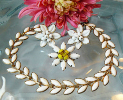 PRETTY WHITE MILK POURED GLASS JEWELRY LOT C TRIFARI+NR