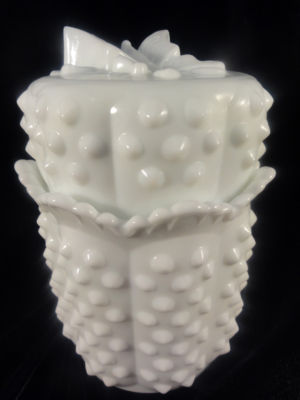 Fenton Hobnail milk glass - Jam/Candy Jar Butterfly Lid