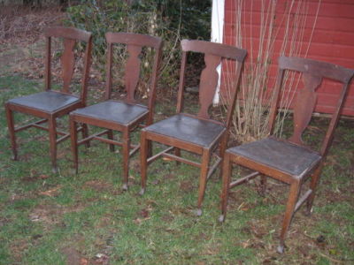 4 QUARTERSAWN OAK T BACK DINING ROOM CHAIRS