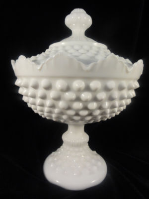 Fenton Hobnail milk glass - Footed Candy Box with Lid