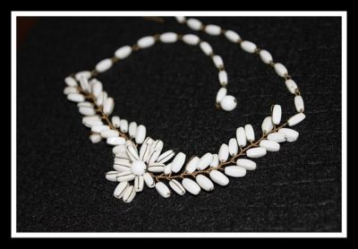 Antique Eastern Germany Signed Milk Glass Necklace NICE