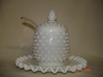 Fenton Milk Glass Hobnail Jam Set 4 pieces 1950-1974