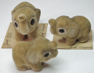 Title (ebay affiliate link): LOT OF 3 VINTAGE JOSEF ORIGINALS FLOCKED MINI ELEPHANTS