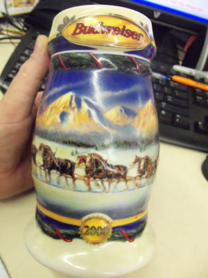 Title (ebay affiliate link): Budweiser Stein 2000 Holiday In The Mountains CS416