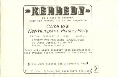 1980 New Hampshire EDWARD "TED" KENNEDY Invitation