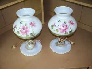 VINTAGE MILK GLASS HOBNIAL ELECTRIC HURRICANE LAMPS