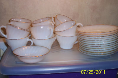 MINT Vintage AH White Milk Glass Swirl w/ Gold Trim