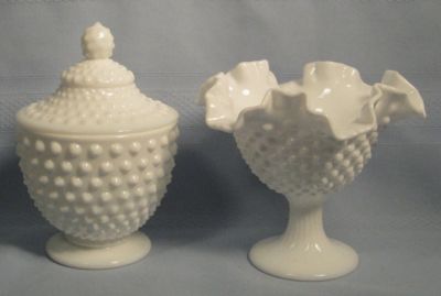 FENTON MILK GLASS HOBNAIL ROUND JAR & COMPOTE LOT