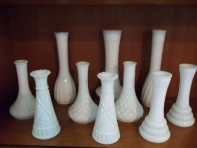 LOT OF 10 MILK GLASS VASES