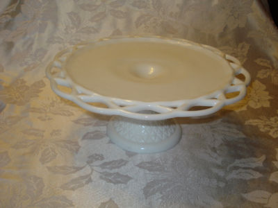 Westmoreland Pedestal Cake Plate milk-glass diamond
