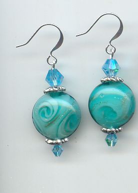 Aqua 'milkglass' swirled lampwork glass/crystal earings