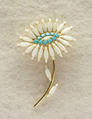 BiG Vintage Napier Milk Glass Flower Pin Brooch MinT