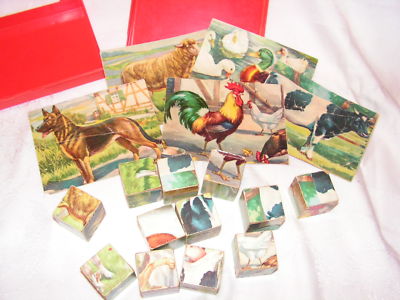 VNT W GERMAN WOODEN LITHO BLOCK PUZZLE TOY GAME ANTIQUE
