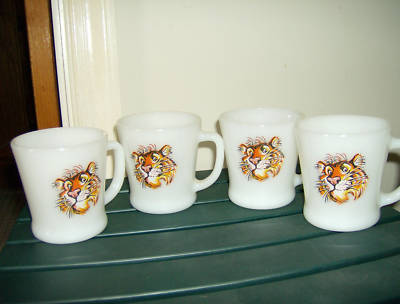 Set of 4 Esso Tiger Milk Glass Mugs by Fire King
