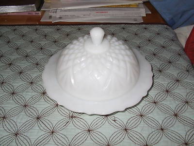 PRETTY WHITE MILK GLASS COVERED BUTTER DISH, VINTAGE!