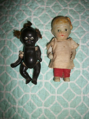 Antique Dolls Two Small Picinini and Child Doll/Japan