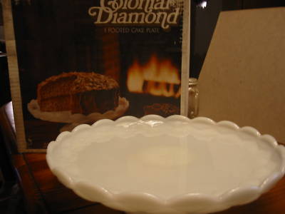 MILK GLASS COLONIAL DIAMOND ANCHOR HOCKING CAKE PLATE