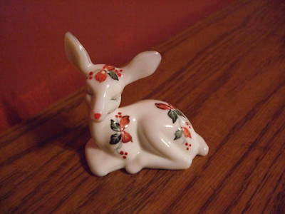 1990 FENTON Fawn Deer "POINSETTIAS ON MILK GLASS"