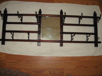 Title (ebay affiliate link): ANTIQUE WOOD WALL HANGING COAT & HAT RACK IRON HOOKS