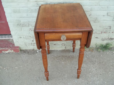 Early Cherry Work Stand Dropleaf Turned Leg Table Old