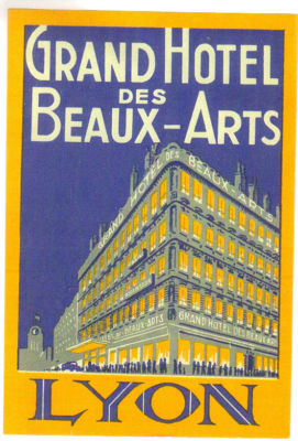GRAND HOTEL BEAU ARTS luggage DECO label (LYON)