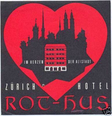 ROT HUS Hotel luggage label ZURICH Switzerland