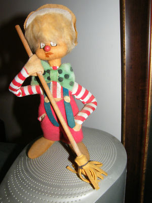 Antique Clown Doll Felt with Floor wiper Spain ?