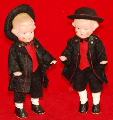 PAIR Antique Hard Plastic Boy Dolls 5-3/4" Orig Clothes