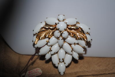 Vtg WEISS Milk Glass Leaf Brooch GORGEOUS!