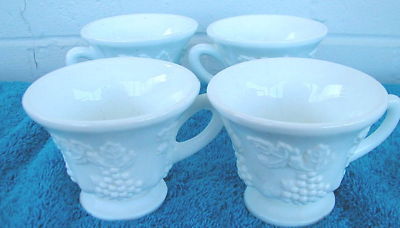 Milkglass Cups [set of 4] * grape design ~ circa 1950's