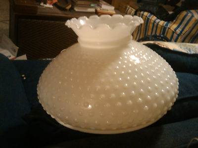 Vintage Hobnail Milk Glass Lamp Shade Ruggle Top HUGE