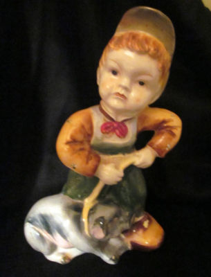Occupied Japan Boy with Pig Figurine~Charming~8" Tall