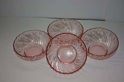 4 ROSALINE PINK SWIRL ARCOROC GLASS BERRY BOWLS