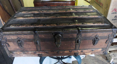 ANTIQUE STEAMER TRUNK W/FLAT TOP