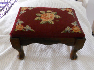 Title (ebay affiliate link): Antique Wood Footstool w/Needlepoint top # on bottom