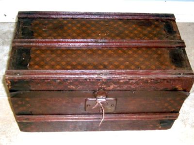 Title (ebay affiliate link): Antique CHILDs TOY or Doll Steamer Trunk Leather Handle