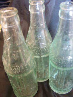 (3) GREEN COKE BOTTLE- SQUARE SIDES- 6 STAR -FT MEAD FL