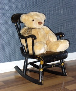 Title (ebay affiliate link): c1840s Child's Doll Bear Rocking Chair w Cane Seat